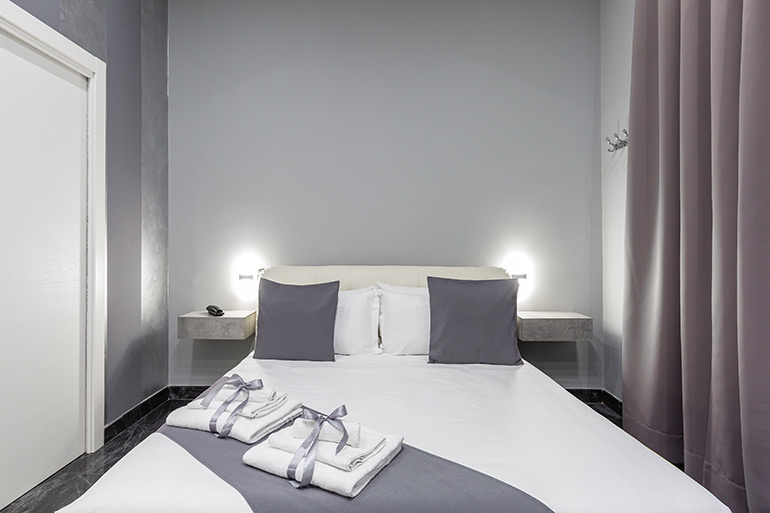 Standard room, for one or two, measure 18 to 20 mq with a 160cm double bed or two 90 cm twin beds and private bathroom with shower. Rooms are modern style furnished and with every comfort and with a city view. Room utilities: flat screen TV with, free Wi-Fi, direct phone, air conditioning, minibar, courtesy set, hotel linen, hairdryer, wardrobe, desk and luggage rack. No smooking room.