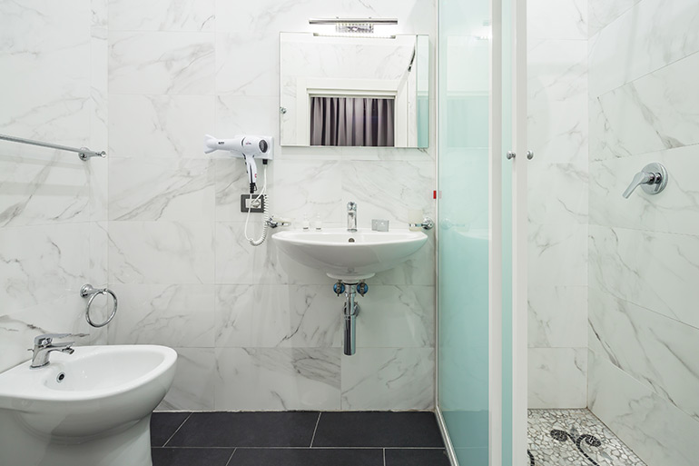 Standard room, for one or two, measure 18 to 20 mq with a 160cm double bed or two 90 cm twin beds and private bathroom with shower. Rooms are modern style furnished and with every comfort and with a city view. Room utilities: flat screen TV with, free Wi-Fi, direct phone, air conditioning, minibar, courtesy set, hotel linen, hairdryer, wardrobe, desk and luggage rack. No smooking room.